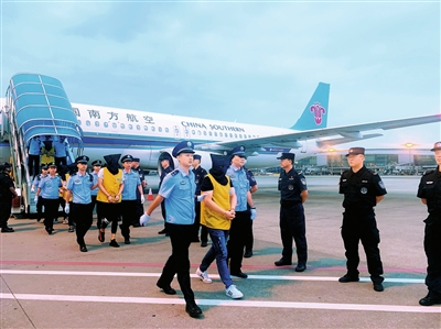 广东警方从柬埔寨押解涉赌人员回国。杨向东摄