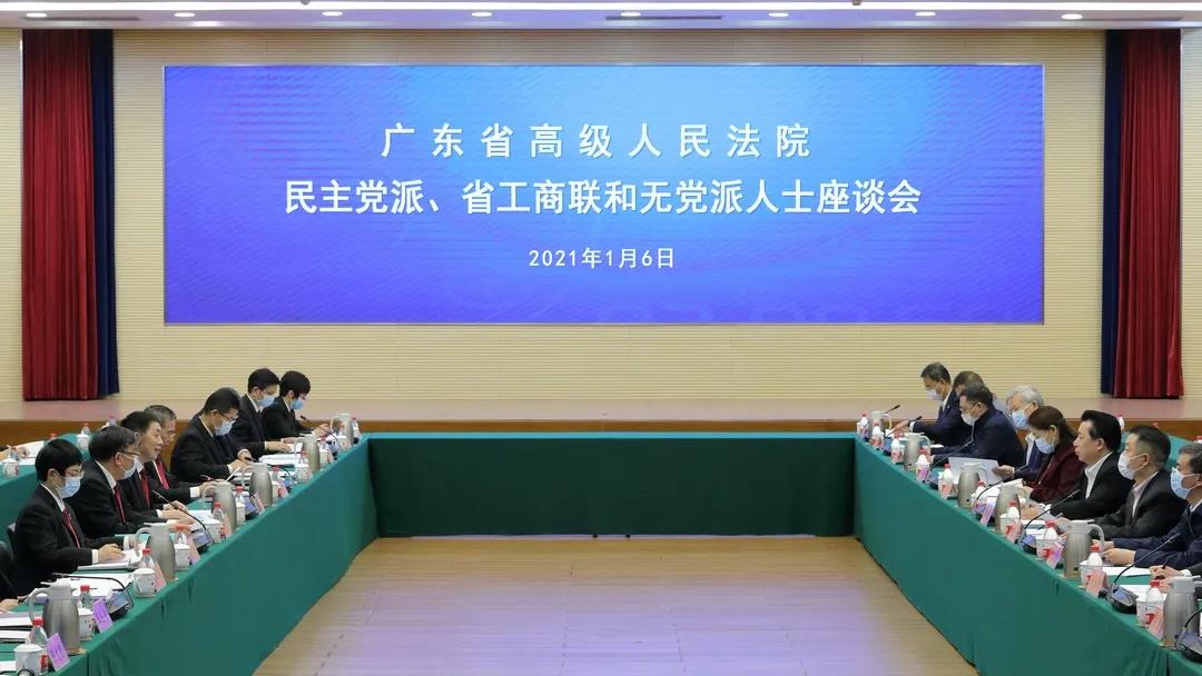 1月6日,广东省高级人民法院向各民主党派、工商联及无党派人士代表通报了2020年工作情况,听取意见建议。广东高院院长龚稼立参加会议并讲话。座谈会围绕深入学习贯彻习近平法治思想和总书记视察广东重要讲话、重要指示精神,实施民法典、推进“双区”建设、保护民营经济发展、构建多元解纷机制等工作进行了交流。与会人员一致表示,要结合省委“1+1+9”工作部署,深刻把握新发展阶段、新发展理念、新发展格局,群策群力把广东建设成为最安全稳定、最公平公正、法治环境最好的地区之一。