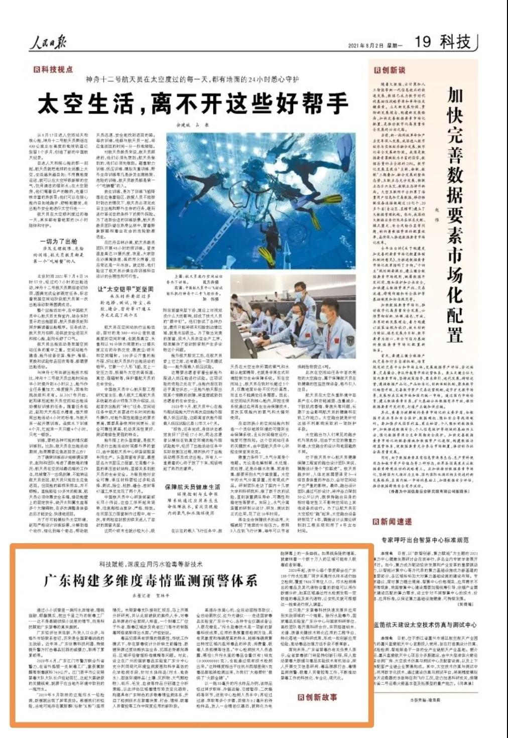 《人民日报》科技版“创新故事”专栏刊发报道,讲述了以科技赋能,深度应用污水验毒新技术,构建多维度毒情监测预警体系的“广东故事”。