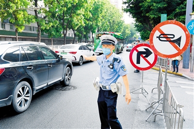 广州市区均设置有禁鸣喇叭标志。景国民摄