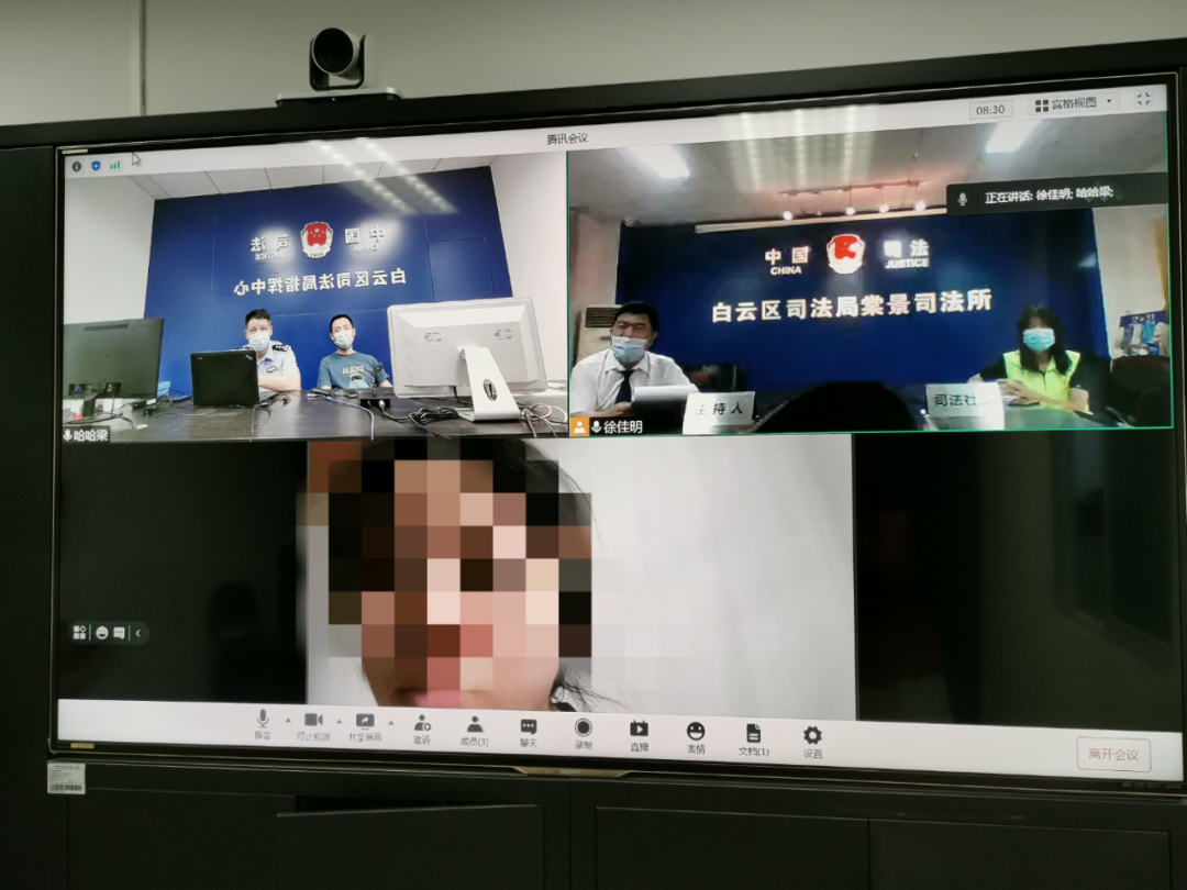 为贯彻落实省、市疫情防控最新工作要求,广州市白云区司法局因时因势调整疫情防控措施,利用科技手段确保社区矫正日常工作在疫情期间不断档、不脱节。6月1日上午,组织驻区警察和棠景司法所,利用远程视频督察系统,对社矫对象张某某和赖某某先后进行了警告和入矫宣告,做到了防疫与执法两不误,既确保了社区矫正监管工作依法、有序开展,又严格落实了疫情防控要求。