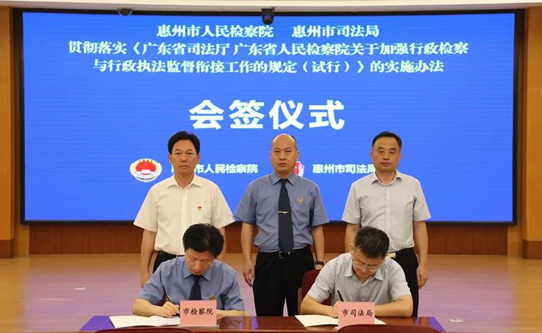 会上,市检察院、市司法局共同签署了《惠州市人民检察院惠州市司法局贯彻落实〈广东省司法厅广东省人民检察院关于加强行政检察与行政执法监督衔接工作的规定(试行)〉的实施办法》。