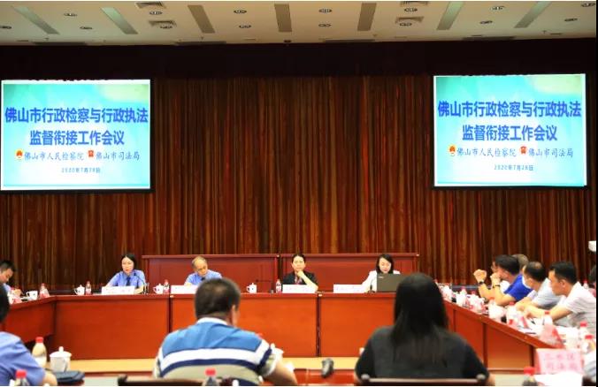 近日,佛山市检察院、佛山市司法局联合召开了佛山市行政检察与行政执法监督衔接工作会议,32家市直单位行政执法部门相关负责人参加了会议。会上,市司法局代表对《佛山市人民检察院佛山市司法局关于加强行政检察与行政执法监督衔接工作实施方案(讨论稿)》进行了解读。市自然资源局、市场监管局及顺德区检察院分别就已制定的协作机制运行实施的情况进行介绍。
