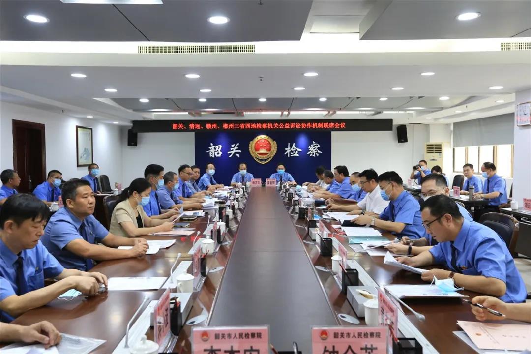 7月6日至7日,韶关市检察院牵头首次召开韶关、清远、赣州、郴州三省四地检察机关公益诉讼协作机制联席会议。广东省检察院党组成员、副检察长李粤贵,韶关、清远、赣州、郴州四地及北江中上游沿线检察机关有关同志等40余人参加会议。