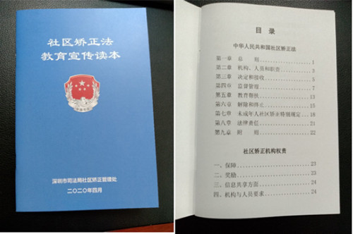 深圳市司法局印制了一万本《社区矫正法教育宣传读本》,目前均已下发至司法所,主要用于社区矫正工作人员和社区矫正对象学习《社区矫正法》相关内容。