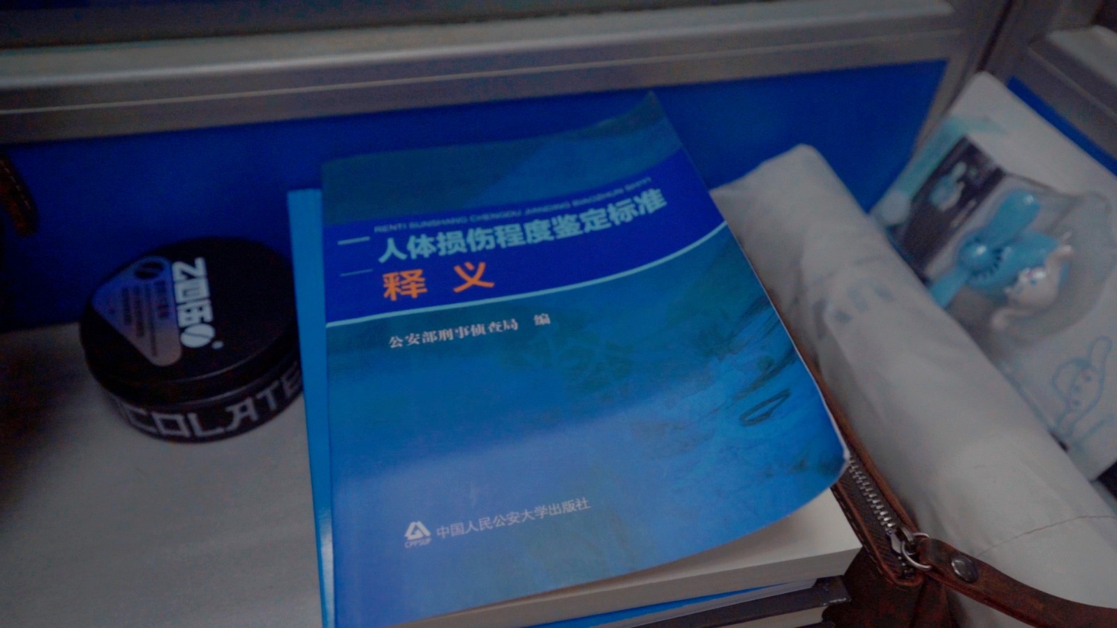 在江门市公安局蓬江分局11楼法医室,从窗台望下去,胜利路和蓬莱路上的车流不息。第一个工位上,三本书整齐地叠着,下面两本是《人体损伤程度鉴定标准释义》和《奈特影像解剖学图谱》,上面一本是《她来自马里乌波尔》,扉页上写着“献给我的妹妹”。主人常背的那个黑色背包还放在桌面,最外层鼓鼓囊囊的,里面装着一瓶还没用完的消毒洗手液。桌上糖果盒里的黑色咖啡豆还有一大半。电脑依旧打开着,右下角任务栏中,还未来得及退出的办公聊天软件不断闪烁着信息提示,两部手机嗡嗡作响,不时弹出的消息点亮屏幕,仿佛主人只是刚刚走开一下,去了走廊或卫生间。