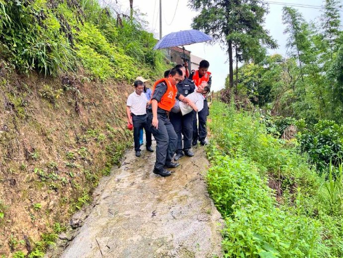 在河源,河源市公安局特警支队队员黄伟森在转移被困居民时被洪水冲入激流之中。特警支队副支队长甘敏见状,毫不犹豫地跳入洪水激流中救人,也被激流冲走。两人死里逃生后,不顾自身伤势,一句:“我没事,不要管我,先救群众。”让无数网友为之动容。
