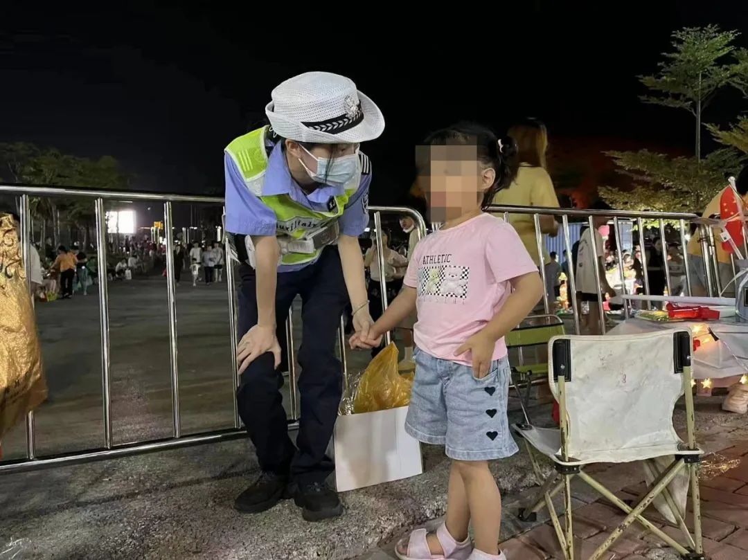 10月3日晩,四会公安交警警员在广强大道指挥疏导时,发现一名幼童独自在道路边徘徊,神色慌张,疑似走失了。