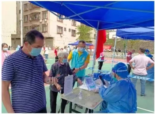 “1102”疫情发生后,电白区检察院干警主动请缨,第一时间向网格长报到,加入当地志愿服务队,自觉服从疫情防控工作组统一调度和工作安排,积极支援核酸检测、流调溯源、人员排查等工作。