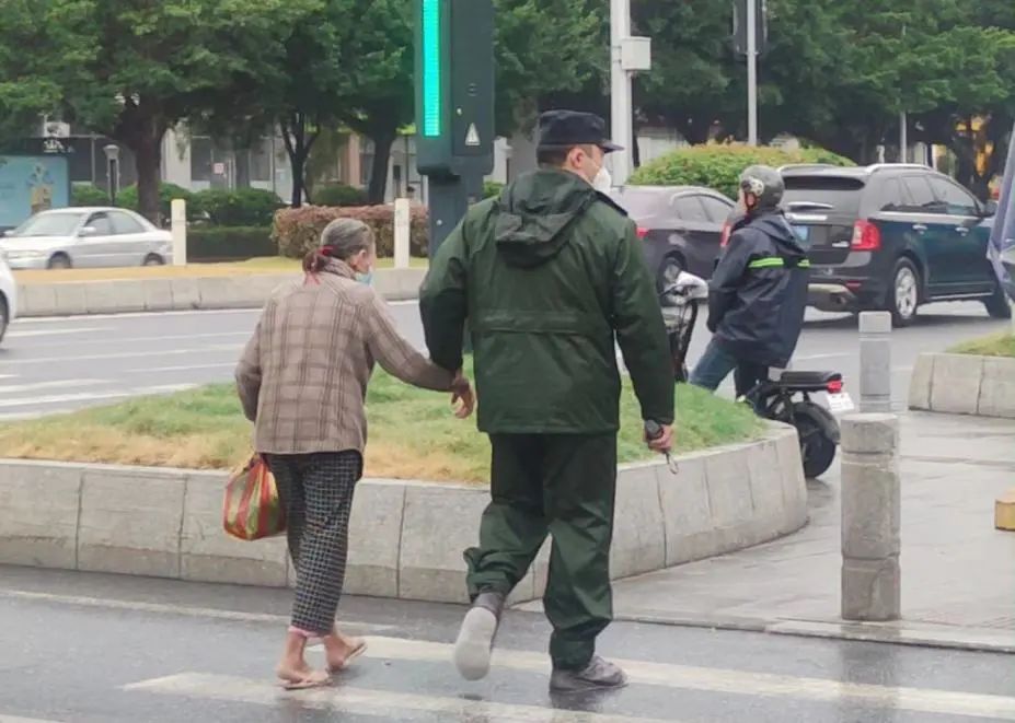 近日,广州市公安局南沙区分局金洲派出所巡逻队员张启卓在巡逻时,发现一名70多岁的婆婆在路边问路。由于当时正下着雨,考虑到路上车辆较多,很容易发生事故,张启卓主动上前牵起婆婆,将她护送到马路对面的公交站,直至将婆婆安全送上公交车才继续返回岗位上工作。