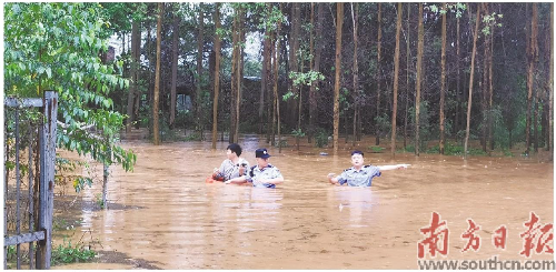 韶关突降暴雨,在樟市镇521省道樟市往高速路口约3km有车被困。樟市派出所副所长郑国平带领值班民辅警立即赶赴现场。“车内被困人员正不停敲打车窗呼救。”郑国平发现被困车辆几乎处于水浸路段最低位,与周边安全位置距离较远。