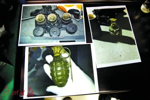 白云警方在查办一起跨境贩毒团伙案时缴获毒品一批以及军用手雷3枚。广州日报记者邵权达摄