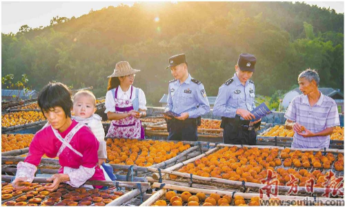 梅州公安在推行“一村一警”警务机制基础上拓展延伸,指派派出所挂点片区民警负责联动各村干部、护林员等组成护村队,在春节后农村“空巢”现象突出,以及农忙、圩日等防护力量薄弱的节点开展集中巡逻防控。一旦发生疑似偷盗警情,“派出所+护村队+村民”联动出击应急机制将迅速启动,全力推动农村治安态势向好。