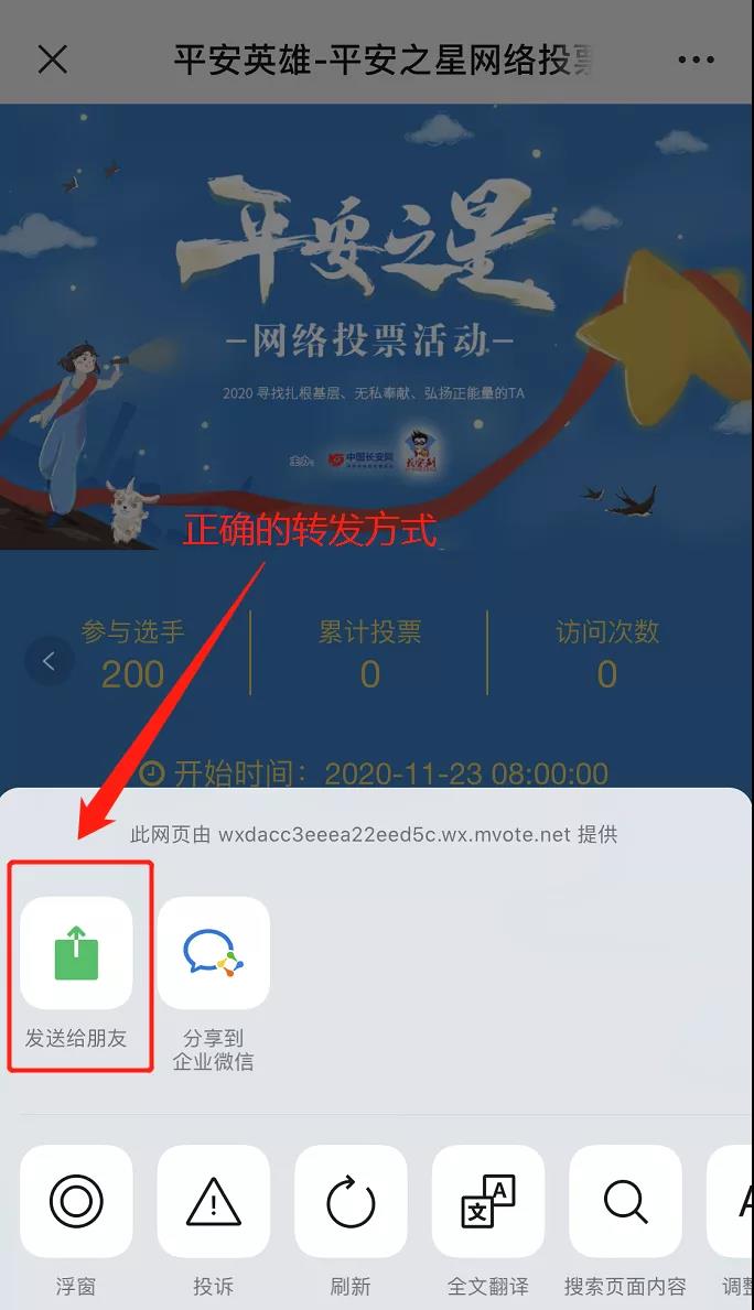 特别提示:微信转发投票页面请按右上角后点击“发送给朋友”。