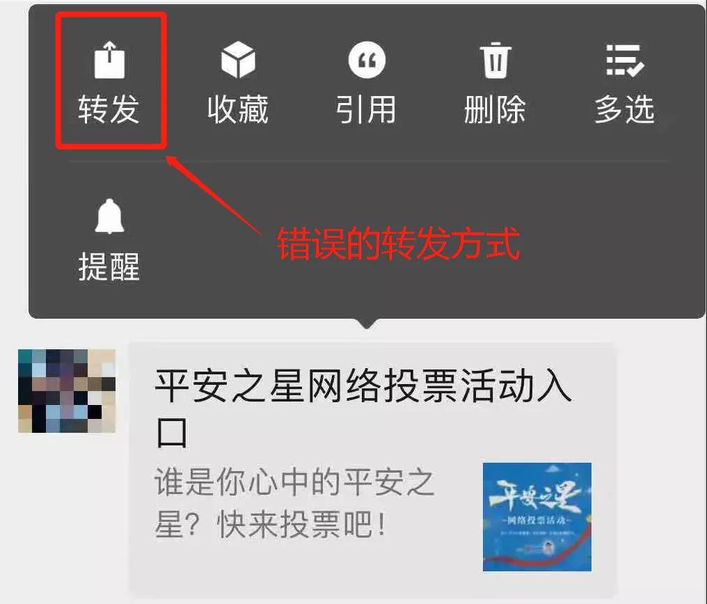 如长按后转发给他人,他人投票则会占用您的票数。