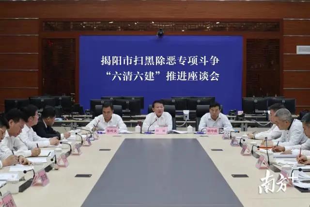 11月6日下午,揭阳市召开扫黑除恶专项斗争“六清六建”推进座谈会,特派督导组组长林琳一行听取汇报并作出指示。会上,榕城区、揭东区、普宁市、揭西县、惠来县和市扫黑除恶专项斗争领导小组部分成员单位分别汇报了本地本系统“六清行动”成效、特派督导反馈问题整改情况、专项斗争收官之年和推进扫黑除恶常态化工作中存在的困难、担忧、期待以及对策建议。