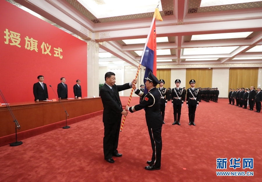 中国人民警察警旗授旗仪式26日在人民大会堂举行。中共中央总书记、国家主席、中央军委主席习近平向中国人民警察队伍授旗并致训词,代表党中央向全体人民警察致以热烈的祝贺。他强调,我国人民警察是国家重要的治安行政和刑事司法力量,主要任务是维护国家安全,维护社会治安秩序,保护公民人身安全、人身自由、合法财产,保护公共财产,预防、制止、惩治违法犯罪。新的历史条件下,我国人民警察要对党忠诚、服务人民、执法公正、纪律严明,全心全意为增强人民群众获得感、幸福感、安全感而努力工作,坚决完成党和人民赋予的使命任务。