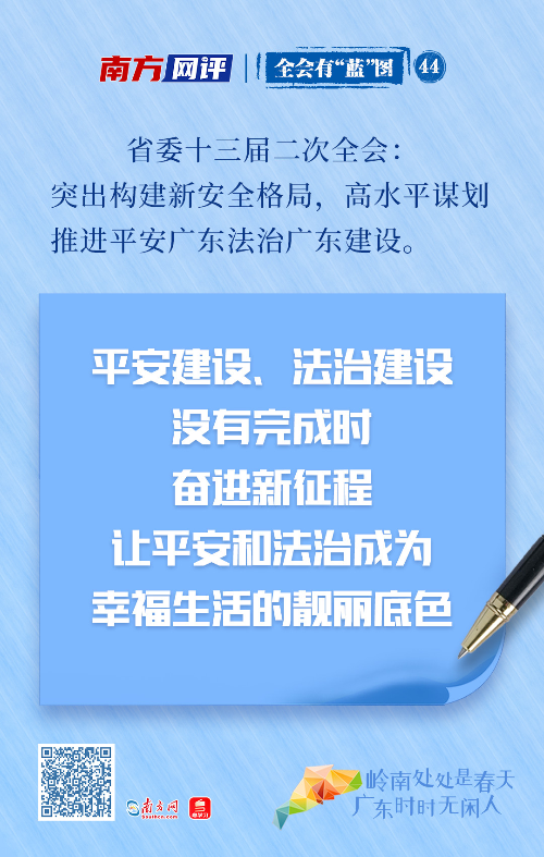 数据显示,2021年,中央对广东群众安全感调查中,群众感觉“安全”和“比较安全”的超过98%。同年中央政法委对各省的平安建设考评中,广东排名全国第二位;广东入选全国首批法治政府建设示范地区(项目)数量居全国首位。这是广东在推进平安广东新利luck18(中国)体育备用网址建设中交出的成绩单。