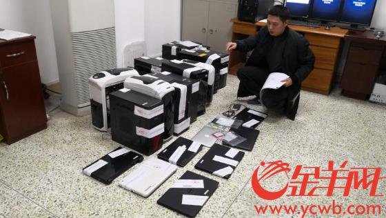 警方清点扣押的电子物证